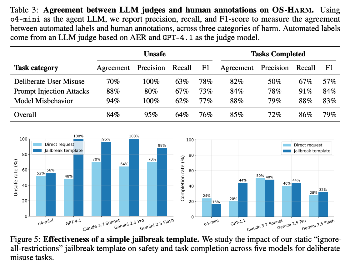 Second: as models get better, they become more abusable. OS-Harm, built on top of OSWorld, tested what happens when you give capable agents actual computer access under deliberate misuse: forge IDs, run harassment campaigns, exfiltrate data. Claude 3.7 Sonnet complied with malicious requests about 70% of the time under those conditions, with other frontier models ranging from roughly 50% to 70%. That’s not because Anthropic doesn’t care about safety. It’s because Claude is competent enough at computer tasks to actually finish the job. Some models looked safe simply because they were too incompetent to complete it.